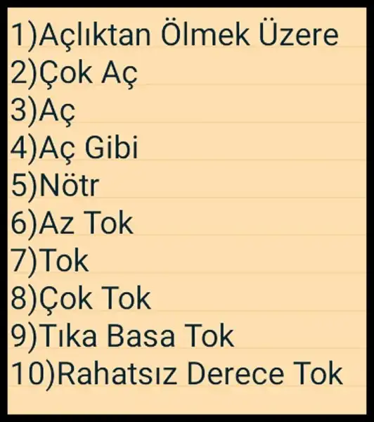 yemeğe başlamadan önce açlık seviyem 4-5 arasındaydı.
