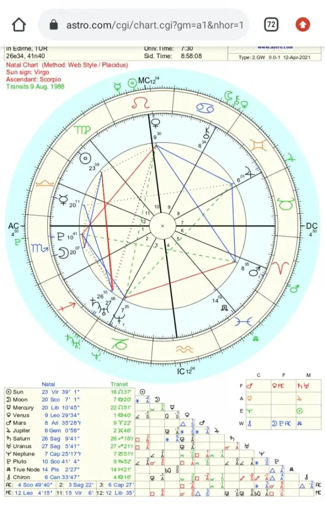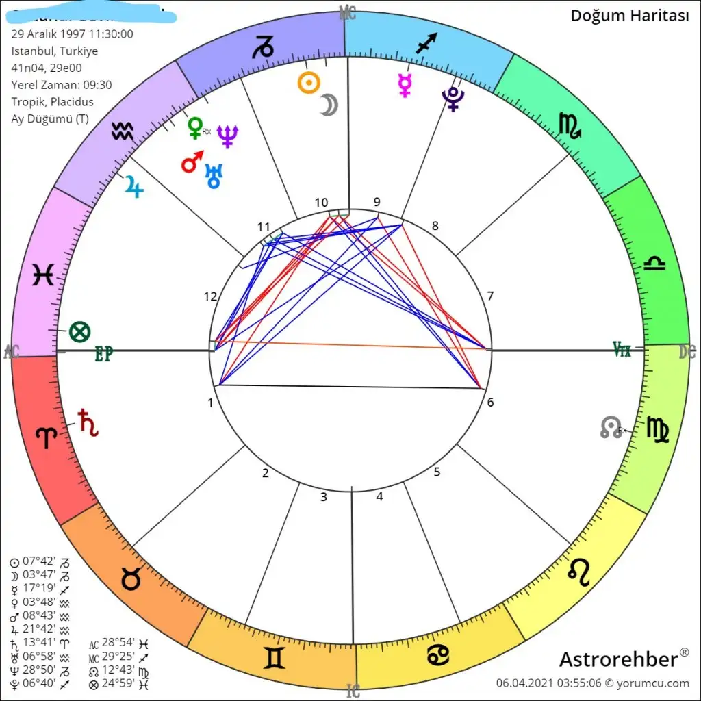 Konuyu acan en son 2020 de giris yapmis su an bakamaz. Haritayi Astro.com dan transitlerle birlikte cikarirsan ben bakabilirim çok bilmiyorum ama bildigim kadar yorumlarim. Bu karisik geldi astro.com haritalarina aşinayim.