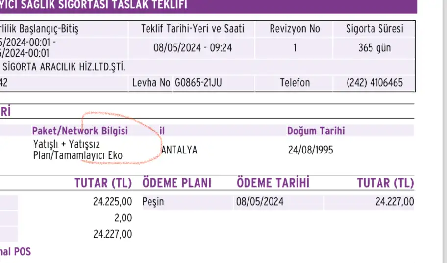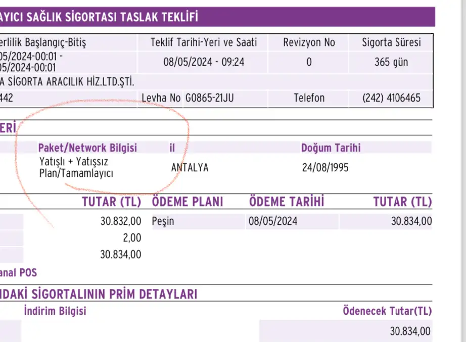 Ekonomik paketi sorun isterseniz bende bugün öğrendim Anadolu sigortanın geçtiği tüm hastaneler olursa 30.800 ama mesela ben sadece antalya bölgesi yani yaşadığım yere göre fiyat aldım başka yerde Anadolu sigortayla anlaşmalı olsa bile karşılamıyor bu şekilde 24.200 şimdi fotoğraf ekliyorum işaretlediğim yerlerden farka bakıp size gelen teklifte eko yazıp yazmadığına bakabilirsiniz