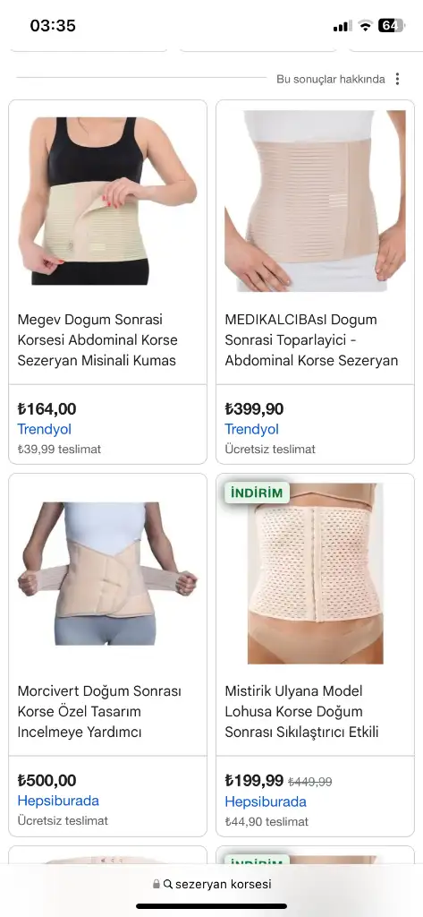 Bende birsey sormak istiyorum bu korseler nasıl korse acaba ne gibi farkı var demirli korselerden mi belimiz de ağrı olunca takılan korseden mi acabaÖncesi için bilmiyorum ama sonrası için kesinlikle korse tak. (Doktorun onay verdikten sonra tabii)