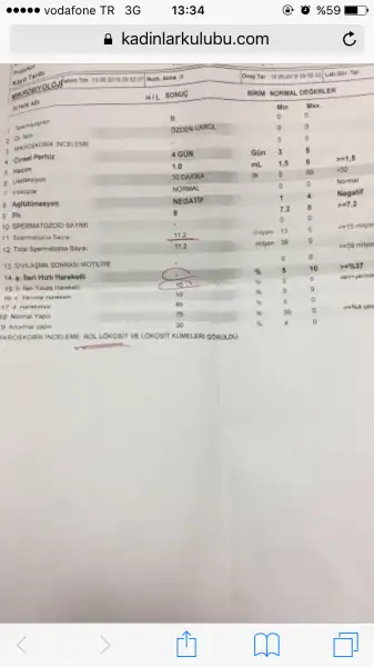 Progresif motilite %30 referans aralığı %32 yaziyor karşısında internete yazdim yuzde 35 olmali diyor bu düşük sanırım