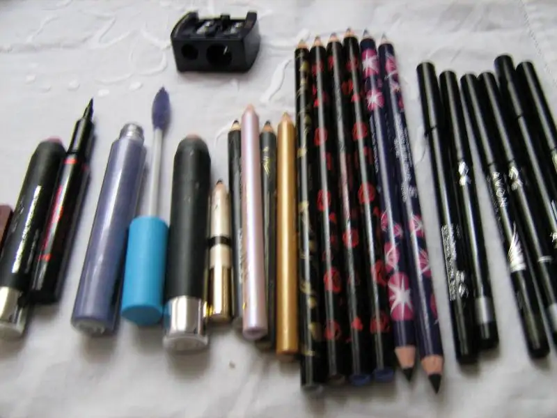 göz kalemi, ruj, allık çeşit çeşit olounca çezbediyor takı da bir bakmışın bir sürü oluyor. bu aralar makyaj yapamayacağımdan da satıyorum, isteyen varsa ne zararı var ki ?? koliyle çok sayıda satış yok. bir kaç ruj kalem... çoğu bayanda olanlar ...bir sürü renk olunca bir hayli evetr kalemim farım var. çantada aykkabıda bayanların böyle... yani uygun fiyatta.