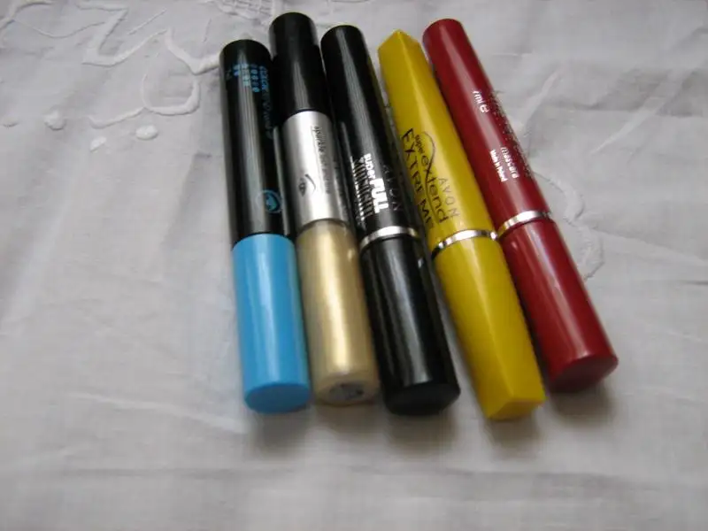 göz kalemi, ruj, allık çeşit çeşit olounca çezbediyor takı da bir bakmışın bir sürü oluyor. bu aralar makyaj yapamayacağımdan da satıyorum, isteyen varsa ne zararı var ki ?? koliyle çok sayıda satış yok. bir kaç ruj kalem... çoğu bayanda olanlar ...bir sürü renk olunca bir hayli evetr kalemim farım var. çantada aykkabıda bayanların böyle... yani uygun fiyatta.kusura bakmayın ama hepsı avon 3 tanesi farklı onlarında 2 si vucut spreyi bı tanesı ruj hem satmak ıstedıgınız bu kadar cok avonunuz varsa sıze kalanı tahmın etmek ıstemıyorum
