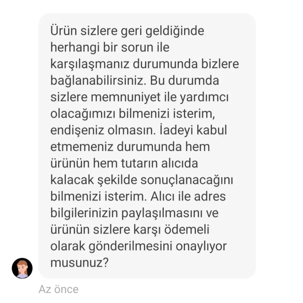 Gönderdiğim ürün birkaç gün şubede bekledi, sonra kargoda geri gönderiliyor yazdı. Bende bekliyorum ki geri gelecek. Sonra alıcı yorum yazdı çok teşekkür ederim ürünü aldım diye. Ben şaşırdım.