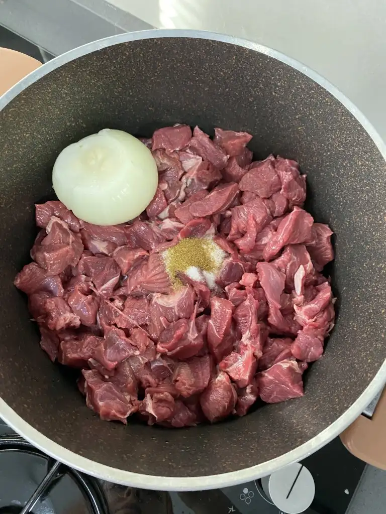 Sargi yaglimizi ince ince dograyip tencerenin dibine yayiyoruz uzerine etleri koyuyoruz tencerenin ortasina tuz kimyon koyalim. Sogani butun halde bir kenara koyalim. Hic su eklemeden kisik atese kapagi kapali koyuyoruz hic karistirmiyoruz 40 dk kadar bu sekilde kisik ateste kendi kendine pişiyor suyu azaldiginda kavurmaya baslayabiliriz sogani cikardim 5 dk kadar kavurdum hepsi bukadar lokum gibi kavurma hazirEki Görüntüle 3044666 Eki Görüntüle 3044665 Eki Görüntüle 3044667 Eki Görüntüle 3044668 Eki Görüntüle 3044669