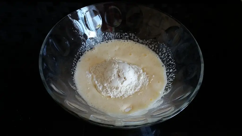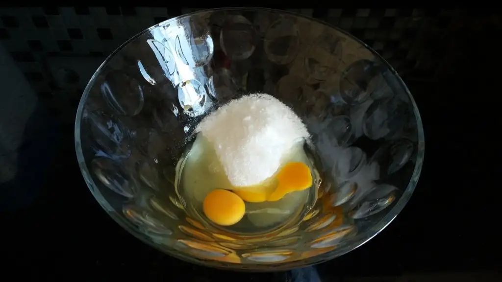 Yumurta ve şekeri bir kaba alıp iyice çırpıyoruz.
