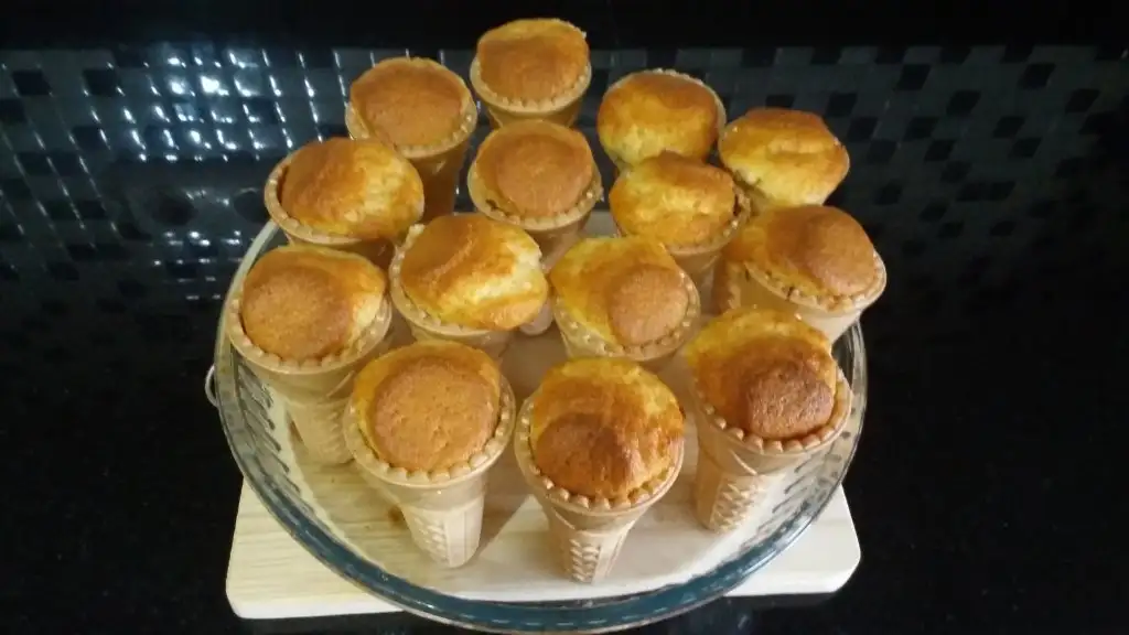 Dondurma külahlarımızı fırın kabına alıp içlerine kek hamurumuzu döküyoruz.Kabaracağı için çok doldurmuyoruz.