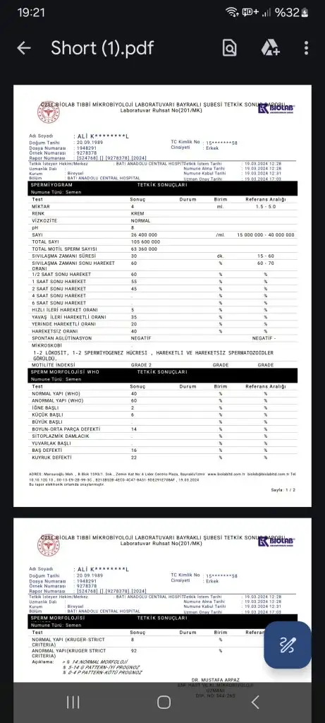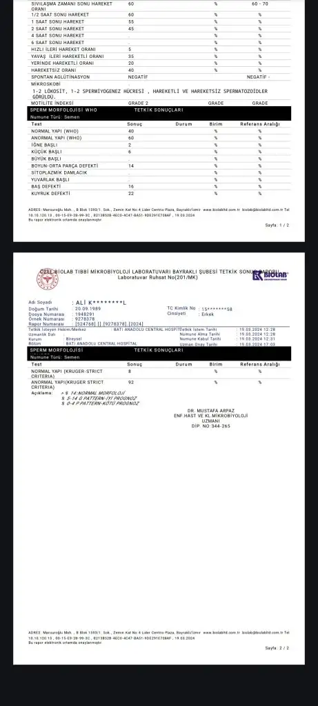 Benim anladığım kadarıyla sadece morfolojisi ve ileri hareketli hızı düşük biraz ama doktorlar morfolojiyi önemli bulmuyorlar doğal yolla olur diyorlar hep.