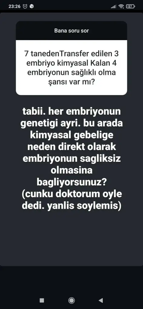 Peki kızlar kimyasal embriyoyla alakalı değilse, başka neden olabilir ? Dr rahim kalınlığını iyi buluyordu hep.Eki Görüntüle 3470915