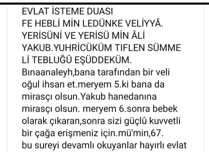 Yaa canımsınLife light icin okudum. Rabbim tez zamanda saglikli, hayirli ,merhametli,uzun omurlu bir evlat, evladina da hayirli anne baba olmayi nasip etsin insallah. Tum evlat sahibi olmak isteyenlere de anne olmayi nasip etsin Rabbim. Bende nedense en cok bebek isteyenlere okumak istiyorum Tabi Morrmeneksee sende hep dualarimdasin