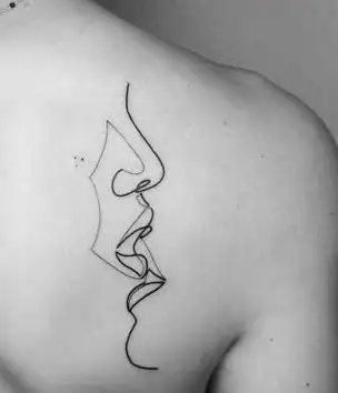 Fransız öpücüğü yapan iki çift. Çizgiler minimalizm tarzında resmedilmiş sadelikten yana olarak. Aslında hastayım bu tarz dövmelere ama bir değişiği olsun derim.