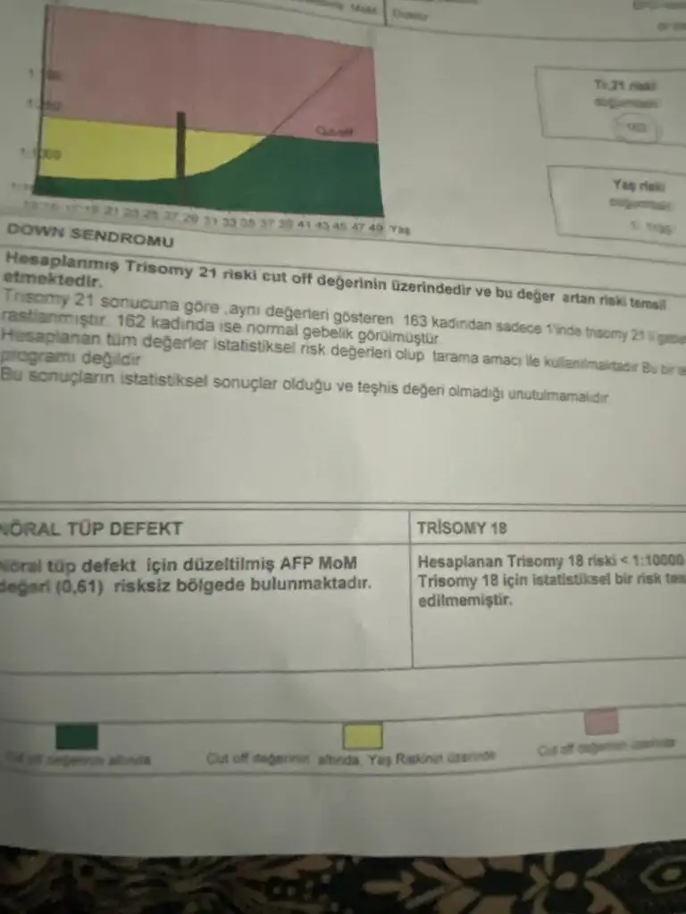 Merhaba 18 haftalık hamileyim yardımınıza ihtiyacım var 18 haftalık hamileyim üçlü tarama testi yapıldı ve sonuçlarında bebeğimin down sendrom riski yüksek çıktı tr.21riski 1:163 çıktı be doktor kesin sonuç almak için amniyosentez önerdi sizin değerleriniz bu değere yakın mıydı aminiyosentez yaptırmayı kabul ettim