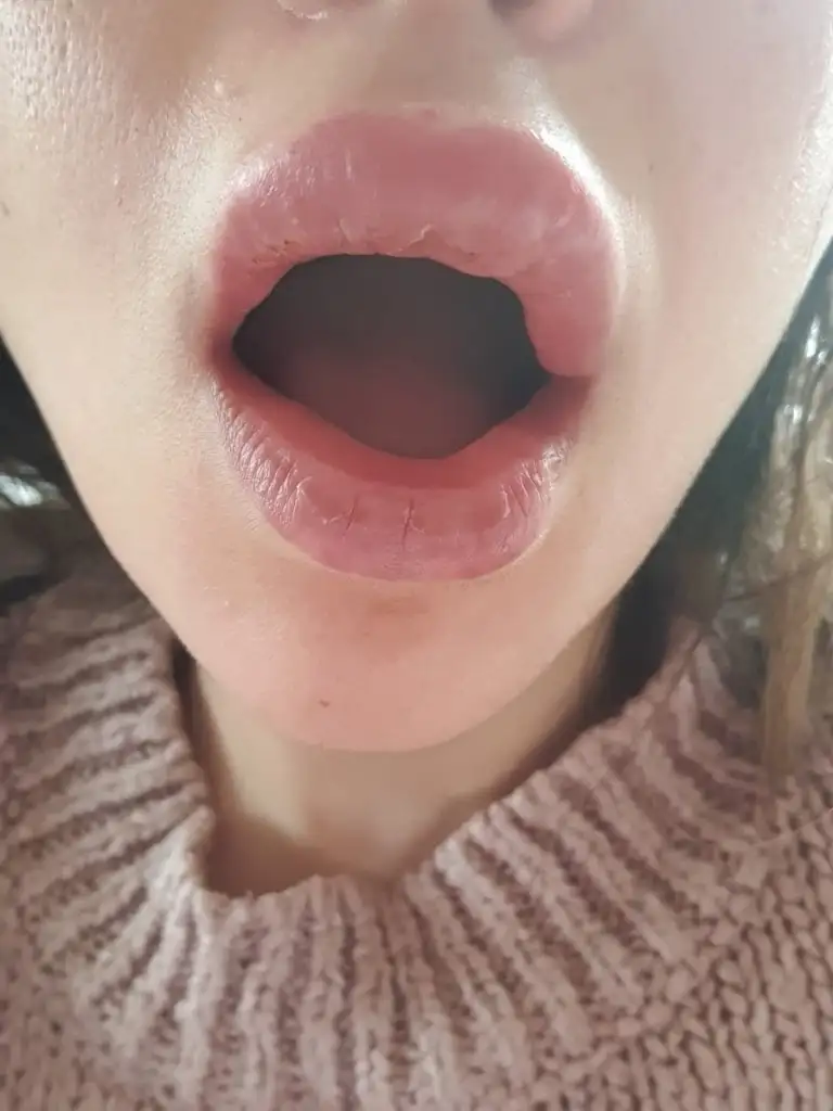 dudağımın fotoğrafını atıyorum, sürekli buz tuttuğum ve nemlendirmediğim için kötü görüntü için kusura bakmayın ama bahsettiğim asimetri problemini anlayın diye koyuyorum. asla ve asla bu doktoru tavsiye etmiyorum.