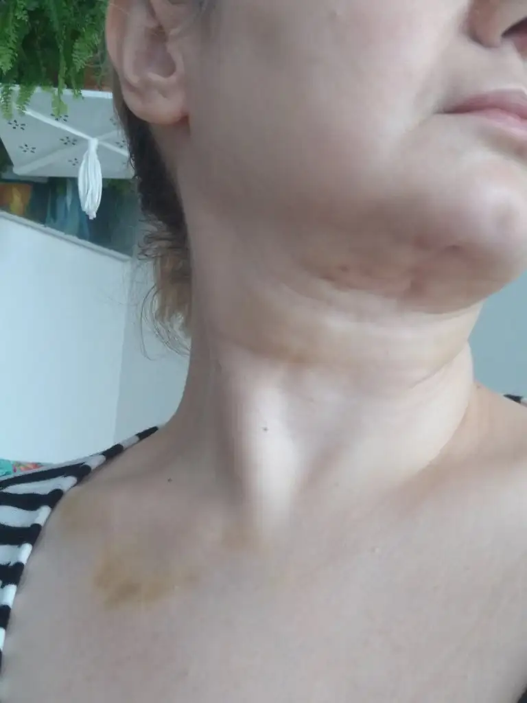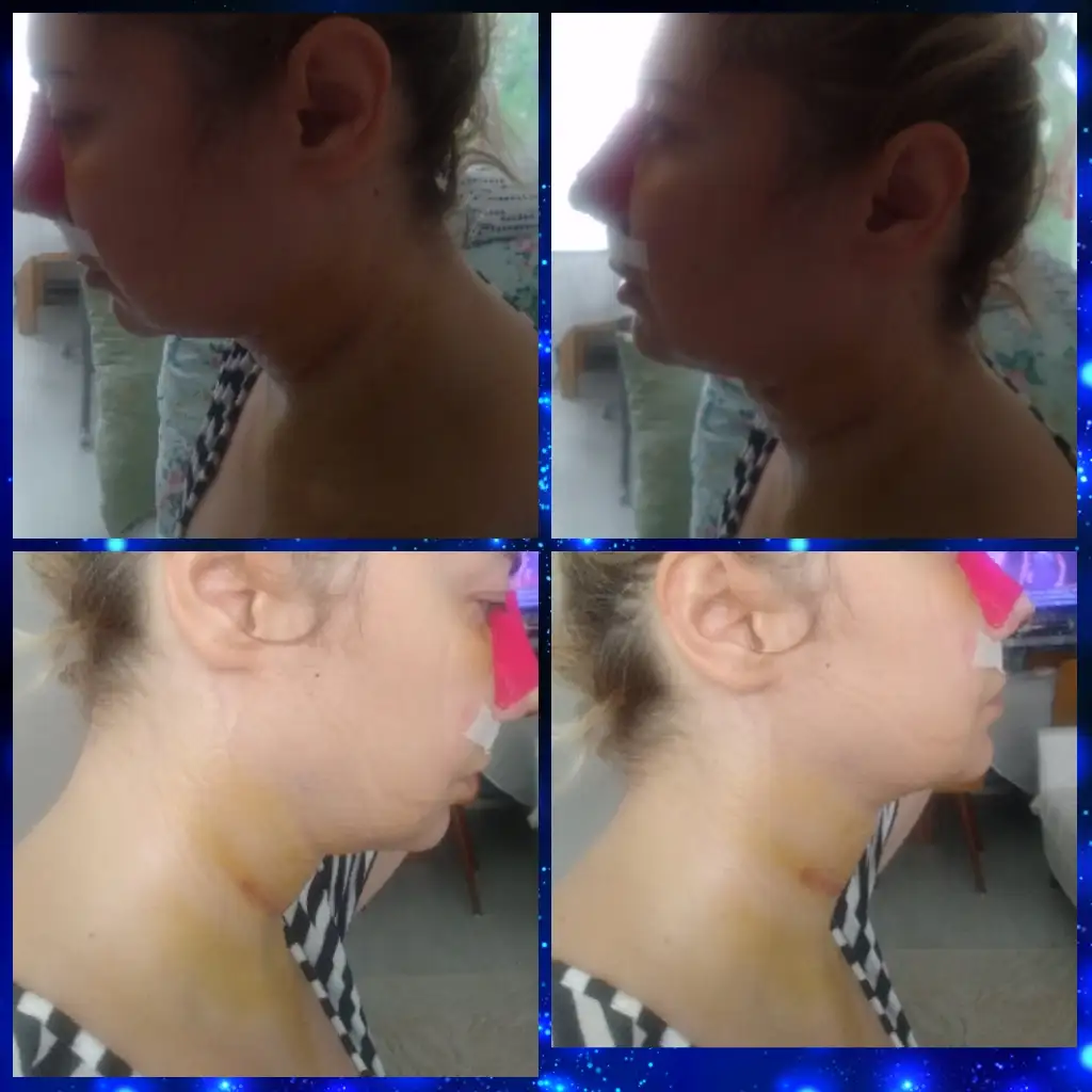 Bugün 17. Günüm, çenemin altında dalgalanma var, başımı yukarı çok fazla kaldıramıyorum, başımı geri atamıyorum, zorlayınca çok geriliyor, sanki yapışmış ve açılmıyor ayrıca çene altı dalgalanma belirginleşiyor. Video atacağım