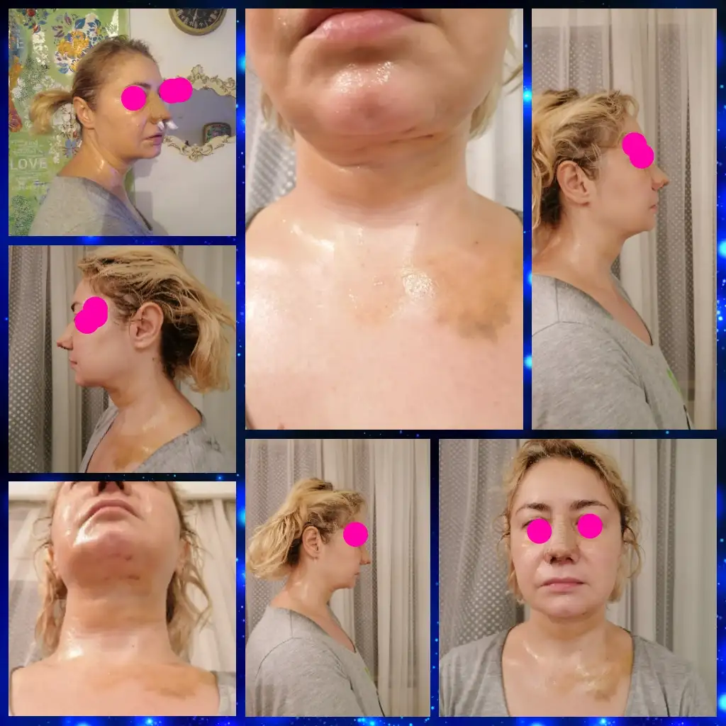 Şişler hala var, kendime boynum için 3 ay tanıdım, iyileşmesi için inşallah daha iyi olur, 5 yerde çökme vardı, onlar düzeldi. Sadece tam çene altımda ki hafif dalga rahatsız ediyor, burnum şiş ama düne oranla indi