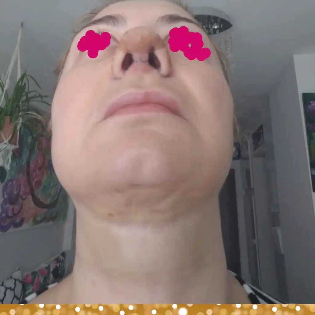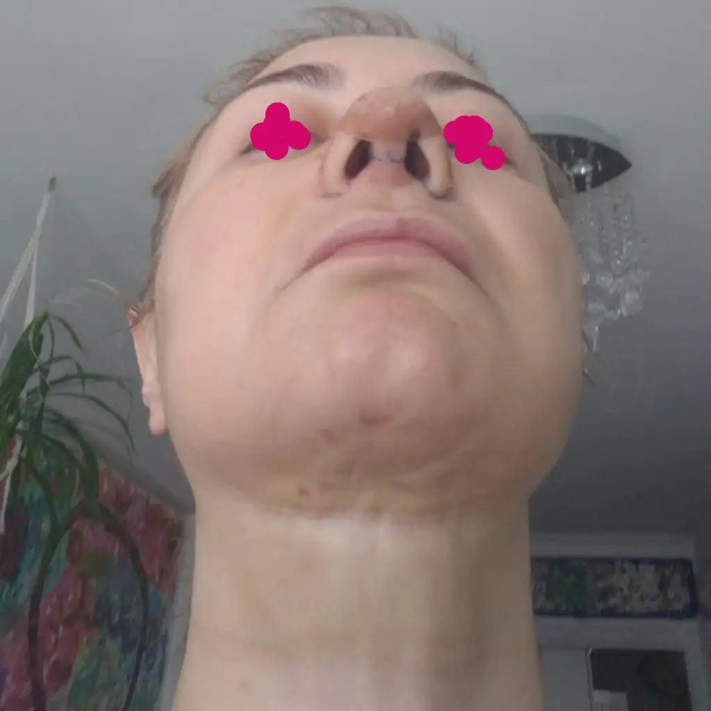 Merhaba, bugün 15.günüm. Boynumu yukarı kaldırınca gıdım alttan böyle görünüyor, başımı yukarı doğru kaldırıyorum ama geriye doğru fazla atamıyorum.