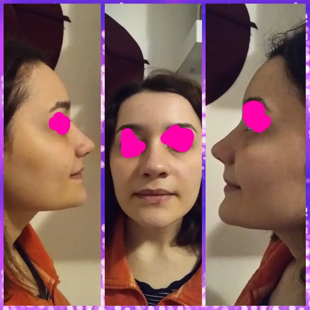 Merhaba, durumum şu anda çok iyi. İyi ki yaptırmışım. Dalgalanma ve topaklanma geçti, sertlik de çene altında tek dikiş kısmında, 1 cm lik yerde çok az var, gün gün azaldı zaten. Çok hoş duruyor, kimse ne yapıldığını ben söylemeden anlayamıyor. Burnumun ucu, sol tarafta daha köşeli, daha geç iyileşiyor, biraz 1 mm kadar düşük, bazı günler normal oluyor, 3.aya girdim, daha erken bir şey demek için. Ayın 24. De kontrolüm var. Onun dışında çok güzel, ucu hala çok şiş, hassasiyeti azaldı, kanatlar yumuşadı, burun ucu sert, ben sert olmasını beğeniyorum.