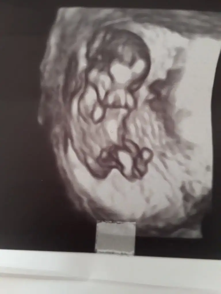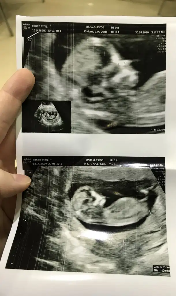 Buradaki fotoda 7 haftalıkken.karindan ultrason.bi önceki resimlerde doktor 12 haftalıkken kararsız kaldı.net birşey söyleyemedi.