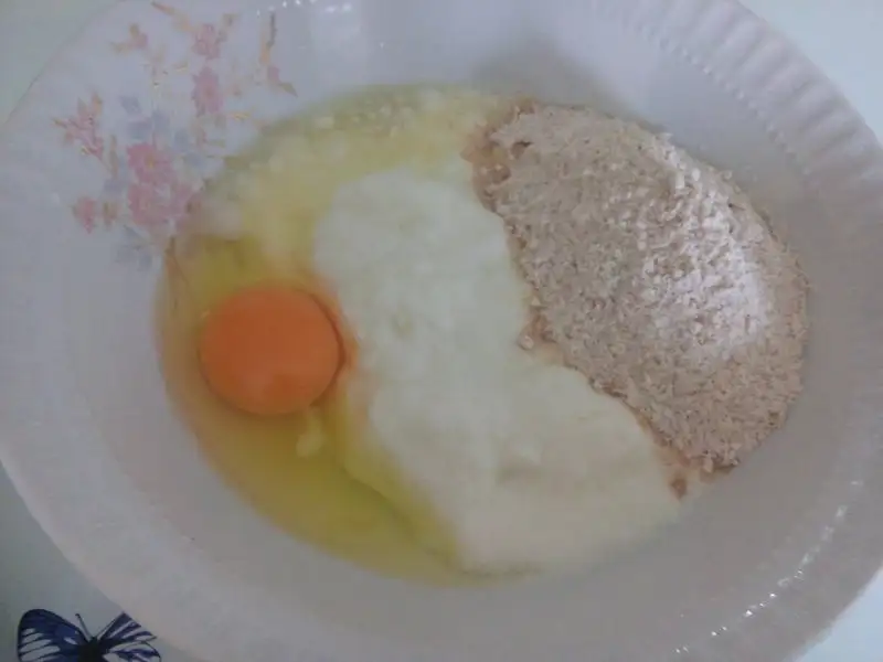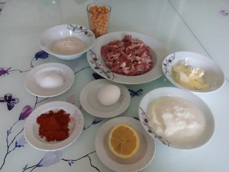Bir kaseye terbiye için yoğurt,yumurta,un ve limonu koyup çırpıyoruz..