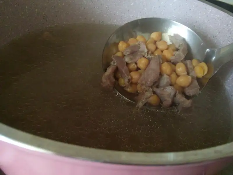 Üzerine haşlanmış nohutları ekleyip 10 dk pişiriyoruz...