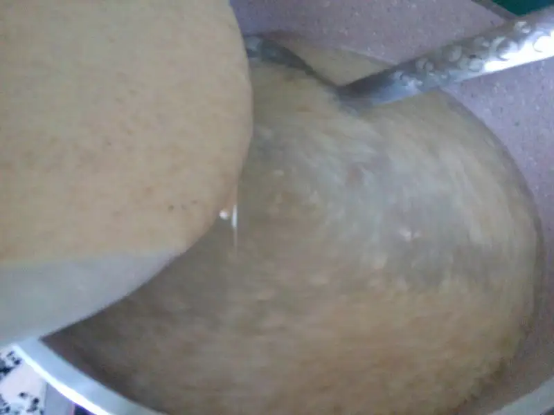 Çırpılan harcı pişen etlerimizin üzerine yavaşça ,karıştırarak boşaltıyoruz..