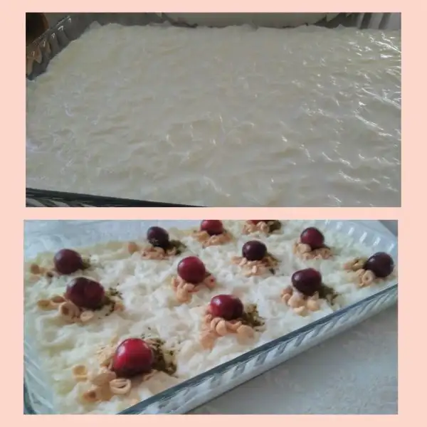 Soğuduktan sonra sütünü tamamen çektiğini görmüş olacağız. Üzerini zevkinize göre süsleyebilirsiniz. Kışın nar, yazın kiraz koymayı seviyorum, kırmızı rengi güllaç üzerine çok yakışıyor. Tat olarak da ben fındık ve toz antep fıstığını çok yakıştıyorum. Güllaç da hazır artık