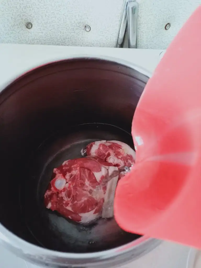 önce 1,5 litre su ile kuzu gerdanlarini düdüklü tencere ye koyuyoruZ 35, 40 dk kadar kaynatıyoruz.