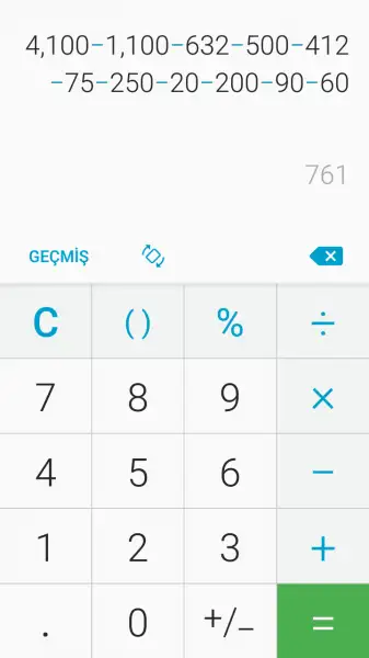 Bu hesapla ben elektirigi 90 suyu 60 olarak hesaplayinca bile elinizdeki kalan miktar bu... ekstra sigara falan mi kullaniyorsunuz ya da yol gideri mi var