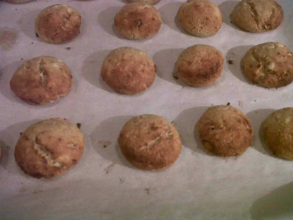 yumurta ve tatlandırıcıyı çırptım, loru ekledim, kepekleri ekledim, karbonatı koydum,aromayı koydum,yoğurup ceviz büyüklüğünde toplar yapıp önceden ısıtılmış fırında 175C de 25 dakika pişirdim(fırın turbo)