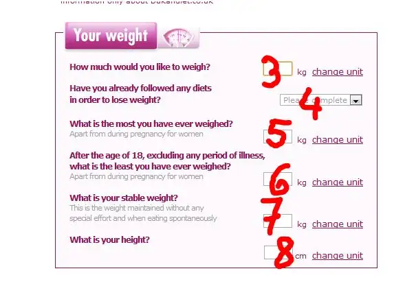Your target weight?.........Hedeflediginiz kiloyu buraya yazacaksiniz. Once "change" butonuna basip metrik olculerden bizim kullandigimiz "kg" birimini secin.
