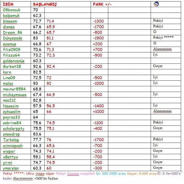Kolay gelsin arkadasim...Onerim bu saatten sonra listeye yeni kisi eklenmesin diger yarisa kalsin yeniler ve iki hafta ustuste bildirmeyen diskalifiye olsun