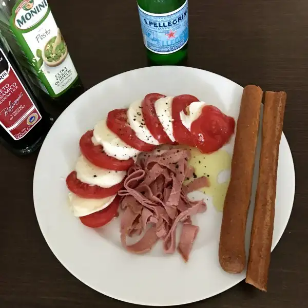 ben de size bresaola pizza ve caprese salata yapacaktım:KK43: neyse bir dahaki yarısmaya artık :KK70: simdi kendime yaptım elimdeki malzemeler eksikti, feslegen olmadıgı icin feslegenli yag kullandım, bresaolayı da yanına koydum :)