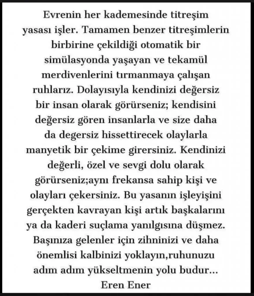 Merhaba canım. Evet başlarda bende senin gibiydim ya niye böyle oluyor diyordum. Aslında sorunu kendin cevaplamışsın haklısın, direnç oluşturuyor mu diye sürekli diken üstünde hissetme kendini.herkese bi soru adım adım başladım pozitif olmaya düşünmeye ama ben öyle yapmaya çalıştıkça bazen herşey tam tersine bürünüyor ya da üstüme üstüme geliyor belki direnç belki kırılma noktası bilemiyorum. ya da ben pozitifi görmeye negatifi ayıklamaya çalıştığım için gözüme mi batıyor negatif olanlar anlatabildim mi? yani farkındalıl mı arttığı için. çünkü bi kaç kere niyetlenip başlangıçlar yapmaya kalktığımda tersine oluyor herşey sanki bi ara. size de oldu mu böyle durumlar?