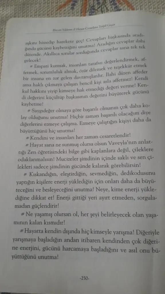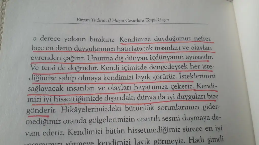 Bircan Yildırim in "Hayat Cesurlara Torpil Gecer" kitabini bitiridim. Hosuma giden yerleri sizinle paylasmak istedimtabii kitabin hepsi okununca daha anlamli oluyor tavsiyem hepsini okumaniz yonunde. Bazi seyleri yeniden hatirlattı umarim herkese faydali olur
