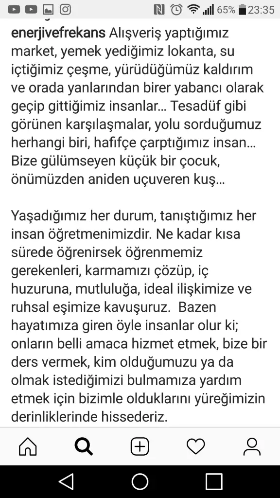 Ne zaman esmalarıma-dualarıma,sporuma, meditasyonuma sarılsam hayatım bir anda değişik insanlarla çevreleniyor.Hepsi de çok farklı ortamlardan. İlhamlar akmaya başlıyor. O sürede çevremdeki insanlar bana sevgiyle,coşkuyla yaklaşıyor. İyi ki varsın, bize çok iyi geliyorsun diyorlar. Onlar da bana çok iyi geliyor. Sonra bir bakıyorum ortamım tamamen değişmiş bulutlar üstünde uçuyor gibi oluyorum