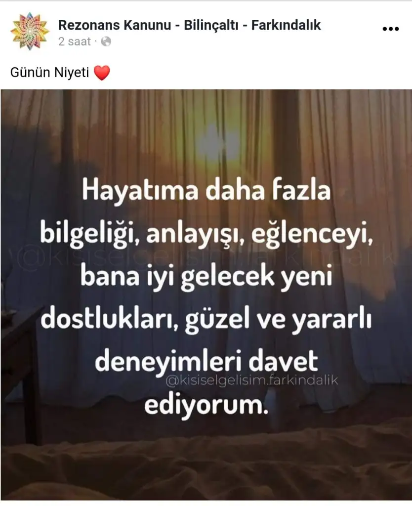 Hangi icine girmedigim enerjiler var ki girsem beni hic tatmadigim maddi manevi bolluk,bereket alanina taşır ??? Önceden yoook artık dediğim,sınırladığım tüm mutluluk,huzur alanlarini bundan daha iyi nasil olur enerjisi ile değiştiriyorum tam da şu anda. Kimden hangi negatif enerji kaliplarini satin aldiysam kendine geri iade ediyorum; icinde bulundugum zamanin-alanin enerjisinj kaynagina gonderiyorum.