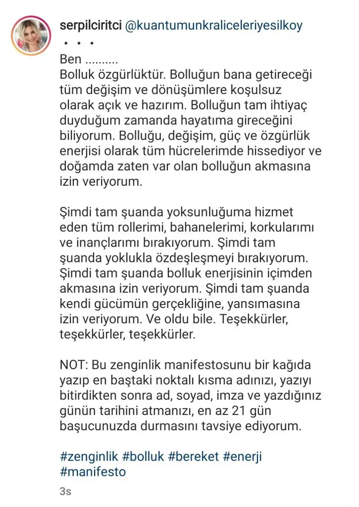 Merhaba buttrfly buttrfly cavabiniz için teşekkür ederim şöyle birşey var benim bilincaltim zenginlikle ilgili nelerle doluudr şimdi ben paranın bana gelmesine engel olan bütün yaratımlarimi iptal ediyorum gibi birşeyler yazıp yakıp kullerinide WC ye atıp sifonu çekmek istiyorum tek tek uğraşamam onlarla 🤣🤣