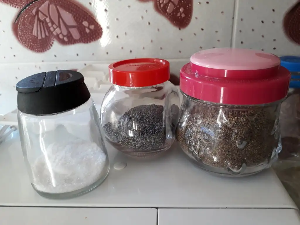 2. Erzaklari 1 litrelik cam kavanozda saklıyorum. Konserve yaptigimizda