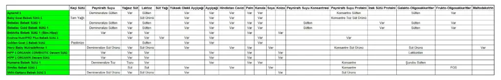 Üstteki pek okunmuyor ama o zaman baby goat dediğini mi alalım ? Diğer eeşimin dediği mağazalarda yok online güvenilir mi bilmiyorum ki yaİnek sütlü olanıda varmış sanırım 2 çeşitmişama içeriği baby goata çok benziyor. Bizim tabloyu atayım. Palm yağı olmayan 4 tane falan mama vardı o zaman. Yeni başka çıkanlar varsa bilmiyorum tabi