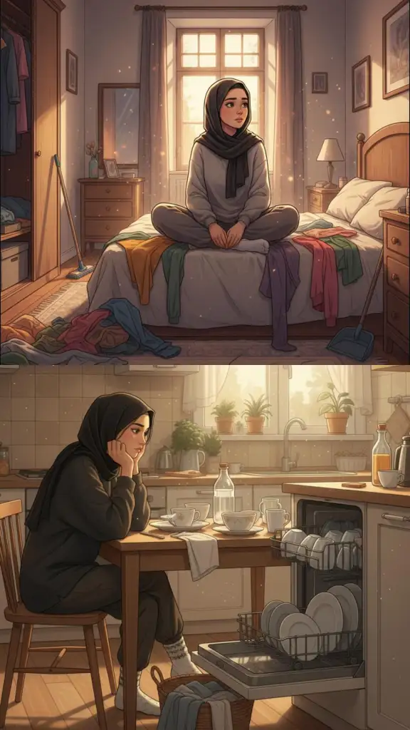 Birkaç temiz çamaşırı katlayıp çekmeceye koydum.