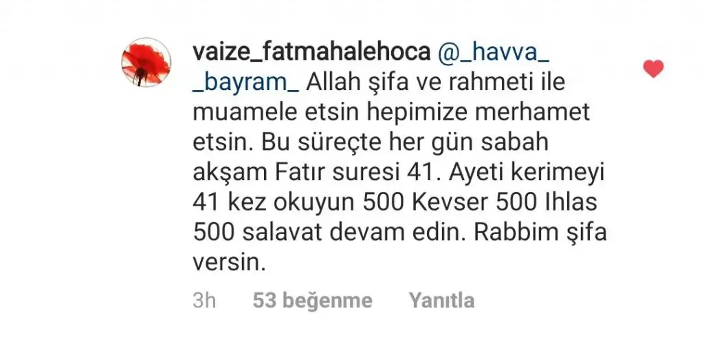 Cok gecmıs olsun Rabbım sifa versin inşallahİyi akşamlar kızlar bugün canlı derslerim vardı yoğun bir gündü kaza oruçlarımı tutmaya başladım iftar hazırlığı filan çok giremedim dün erkek kardeşim koku kaybından test vermiş pozitif çıktı annemle babamdan da test aldılar onlar da pozitif çıktı malesef en çok babam için endişeliyim geçen yıl böbrek nakli oldu bu sebepten bağışıklık baskılayıcı ilaç kullanıyor Allah tüm Şifa bekleyenlere şifa versin inşallah
