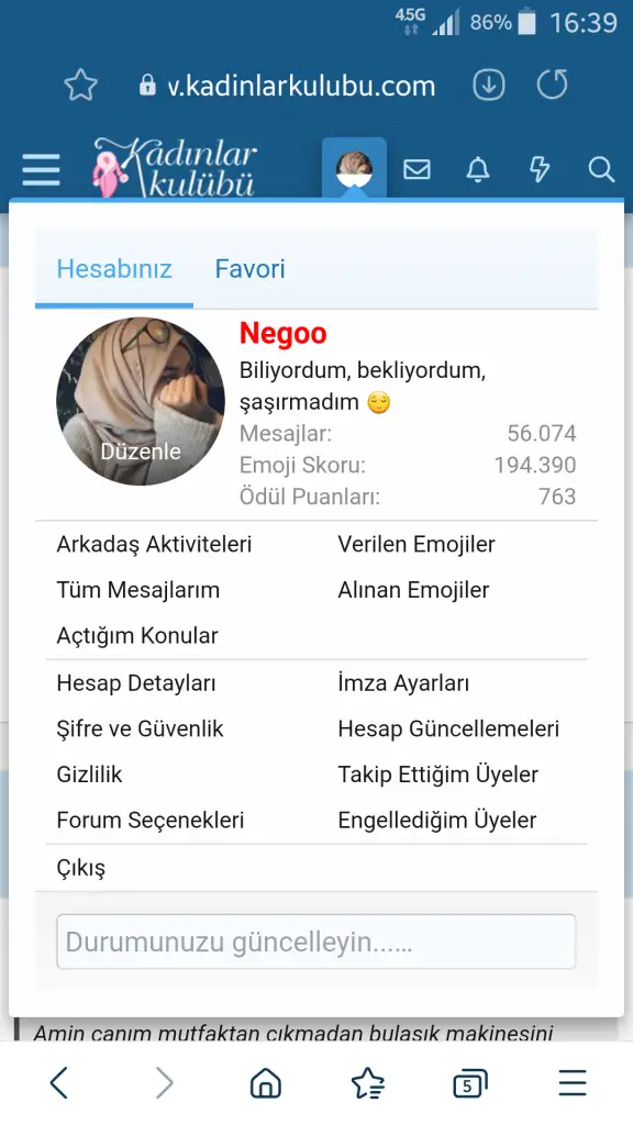 Hesap detaylarındanbende depresyondayim kolum kalkmiyordu. Buradaki herkesten Allah razı olsun bir haftada bile bende çok şey farketti. okuyunca ne güzel yapıyorlar bende Bari şunu yapayım diyorum. Çok sevmeme rağmen kahve bile yapıp icmiyordum. Arkadaşlar yazınca yapıp içtim mutlu oldum. Evet Fibromiyaljim var uykuda idi galiba uyandı. Nick nasıl değişiyor.biliyormusunuz