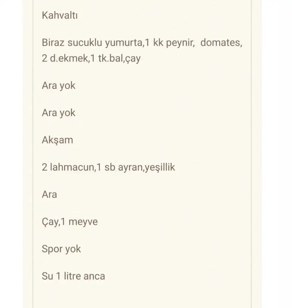 Sabah 10.30 5 kasik menemen 2 dilim ekmek zeytin 1 cay kasigi bal