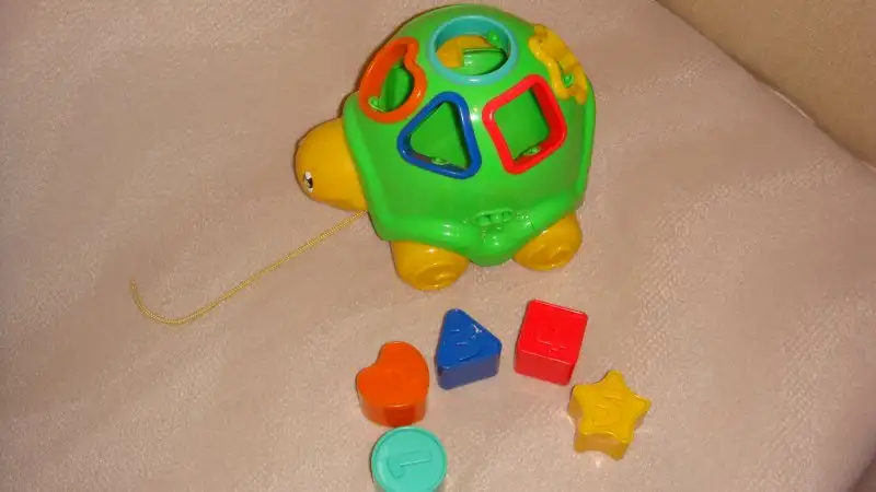 - Bebeğin el göz koordinasyonunu ve mantık gelişimini destekleyen şekilli oyuncak.