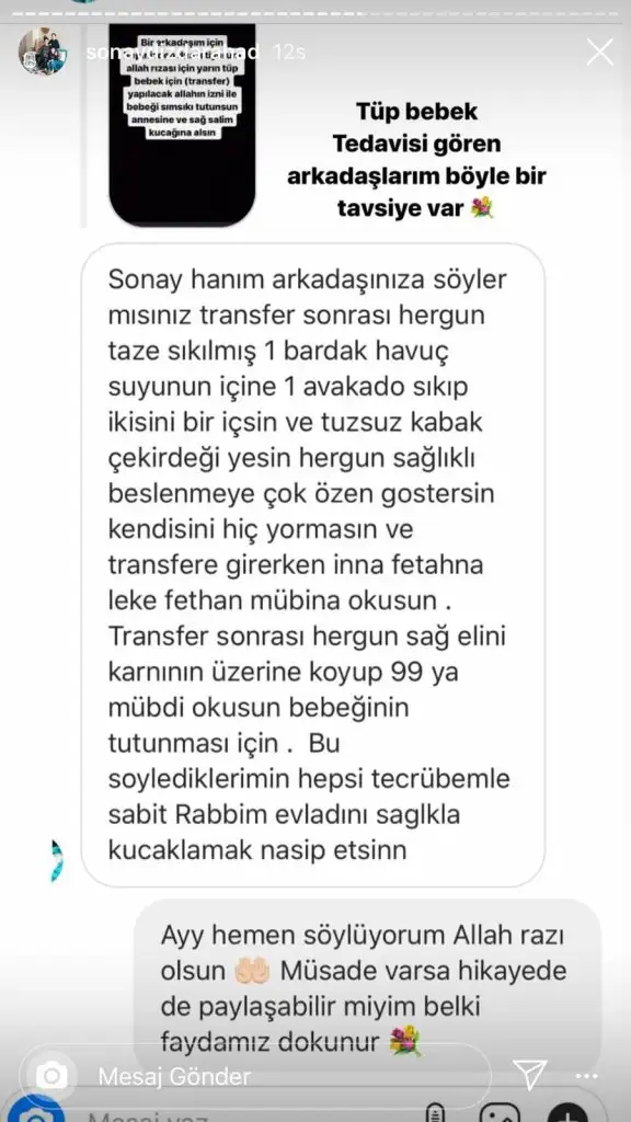Insallah canım insallahBasarili bir sekilde gecsin bebeginiz tutunsun insallah![]()