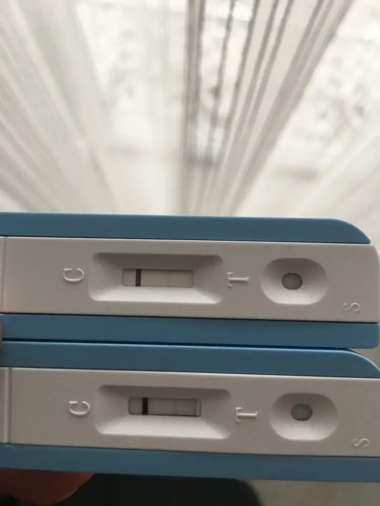 Üstteki dünkü test alttaki bu sabah. Bekleyen testte çizgi biraz siliniyor o yüzden bugün çok bir koyulaşma olmamış ama silikleşme de olmamış. Bakalım yarın kan vereyim tekrar tam netleşir