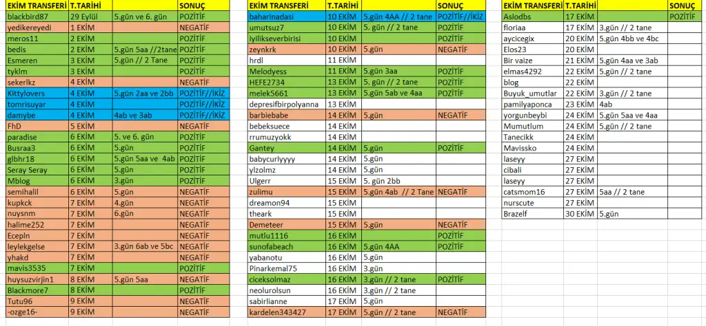 4 Ekim transfer 4ab 3ab. Pozitif. İkizlerimi bekliyorum.