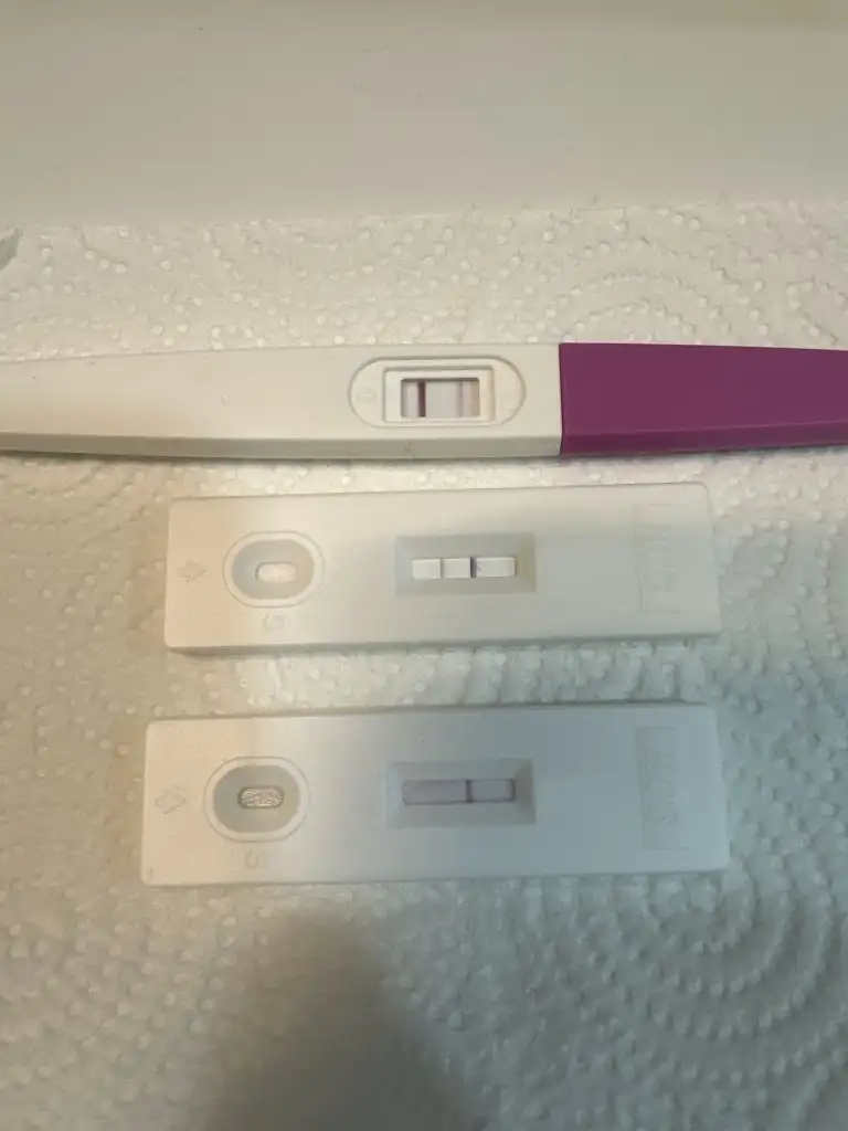 Pozitif diğer ikisi ama son yaptığınız test bozuk olabilirDün yaptıklarımın biri erken gebelik testi biri normal kaset testti silik çizgi vardı bugün normal kaset test yaptım tekrar onda hiç yokfotoğraf da koydum alttaki bugün yaptığım