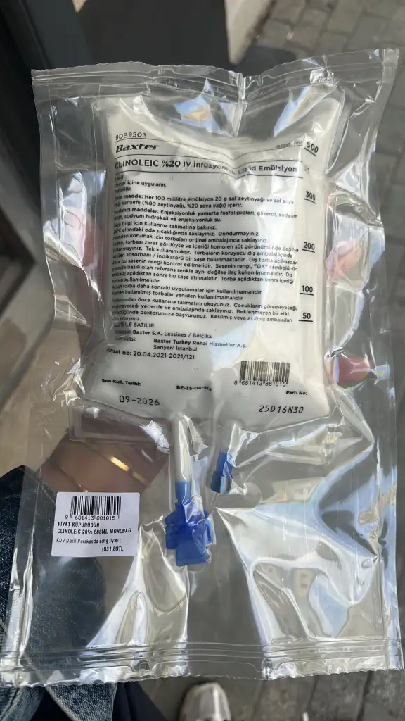 Merhabalar peki verdiğiniz ücret nedir acaba toplamda serum içinSeyreltilmesinin amacı vücudun alerjik reaksiyon verme ihtimalini azaltmak. Bir de clinoleic çok yoğun kıvamlı bir serum. Damar da tıkanma falan yapmasın diye seyreltiliyor.