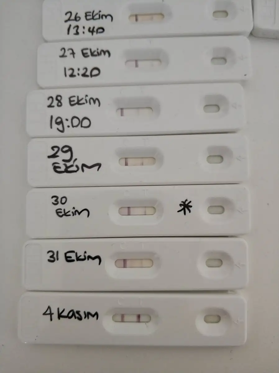 Kızlar ovulasyon deniyorum. Tam 23 gündür çizgiyi görememiştik. Bide bu arada sehir dışına gitmek zorunda kaldım. Teste devam edemedim. ( Aslında yanlış yaptım biliyorum ama mümkün olmadı testi yapmak) Bugün eve geldiğimde hemen testime devam ettim.